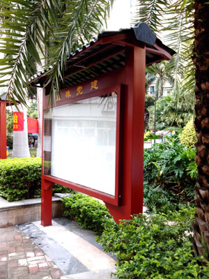 跟每個行業(yè)一樣,力求創(chuàng)新,追求完美,也是標識行業(yè)的特點。現(xiàn)在的標識牌很多都固定材料及工藝,不能與自然環(huán)境達到和諧統(tǒng)一,為此,很多設(shè)計和技術(shù)人員不斷研究創(chuàng)新,將金屬標識牌與仿古結(jié)合。仿古的宣傳欄由此而來。