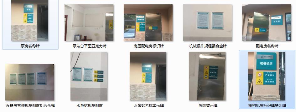 1、水閘大壩、泵站名稱牌;2、水閘大壩、泵站工程區(qū)域辦公導(dǎo)視牌;3、水閘大壩、泵站樓層索引牌,科室門牌、辦公室門牌;4、泵站內(nèi)巡視路線牌,巡視點(diǎn)牌;5、水閘泵站參觀提示牌;6、水閘大壩、泵站內(nèi)立牌工程簡介牌,水法規(guī)牌,安全警示牌,管護(hù)范圍牌,不銹鋼指示牌,鋁合金材料標(biāo)識牌;7、水閘大壩、泵站管理規(guī)章制度,上墻制度等標(biāo)識牌;7、水閘大壩、泵站內(nèi)道路交通標(biāo)線以及設(shè)備定標(biāo)線。